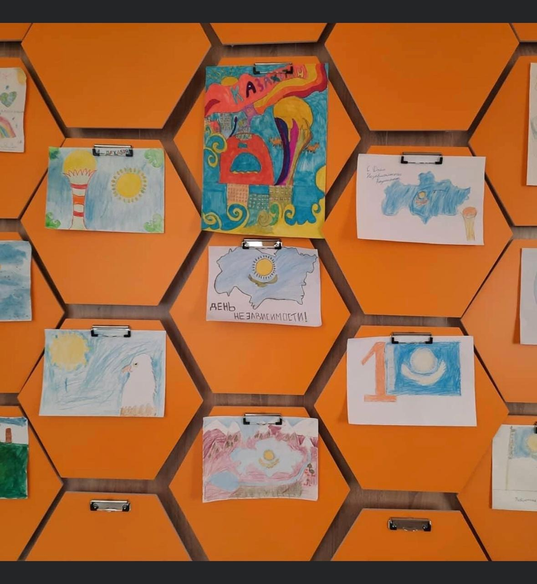 В КГУ ОШ №75 им Ш.Кудайбердыулы прошла выставка рисунков и поделок, посвящённая Дню Первого Президента Республики Казахстан и Дню независимости Республики Казахстан.