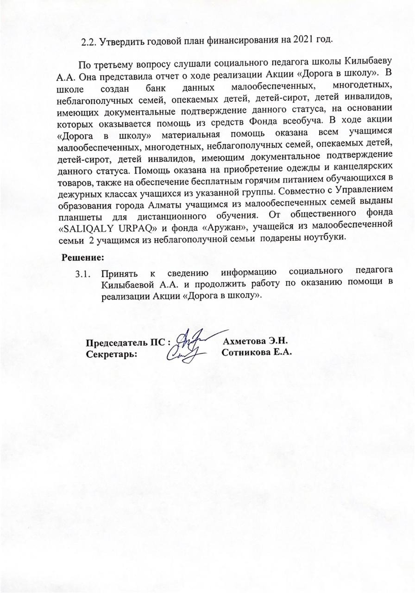 03 декабрь 2020 0 1 2 3 4 5 Протокол №2 заседания Попечительского совета КГУ «ОШ № 75 им. Ш.Кудайбердыулы»