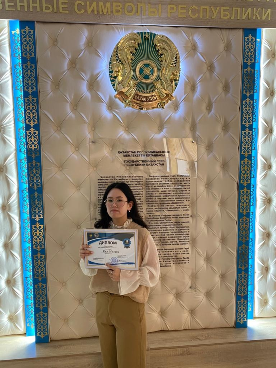 16 апрель 2021 0 1 2 3 4 5 Искренне поздравляем!!! Искренне поздравляем ученицу 10А класса Ким Милану с заслуженным 2 местом в Городской предметной олимпиаде среди учащихся общеобразовательных школ по предмету Основы права. 🎉🎉🎉🎉 Желаем удачи на Республиканском этапе!!!
