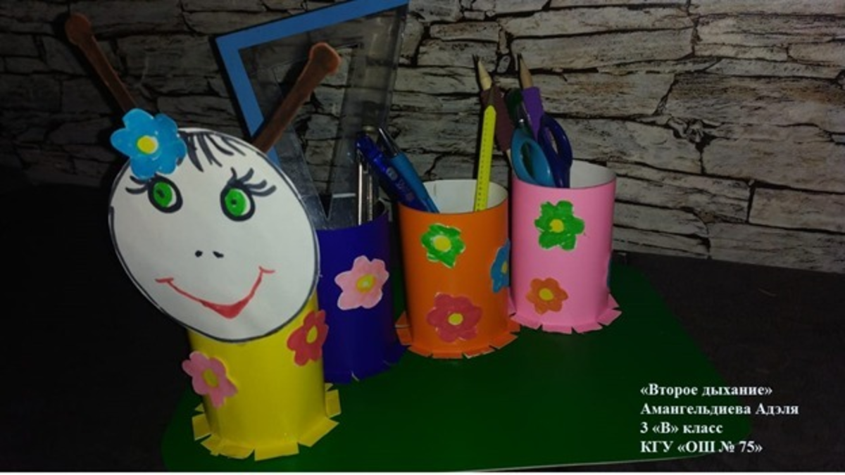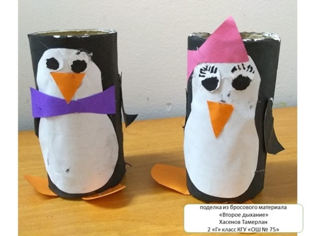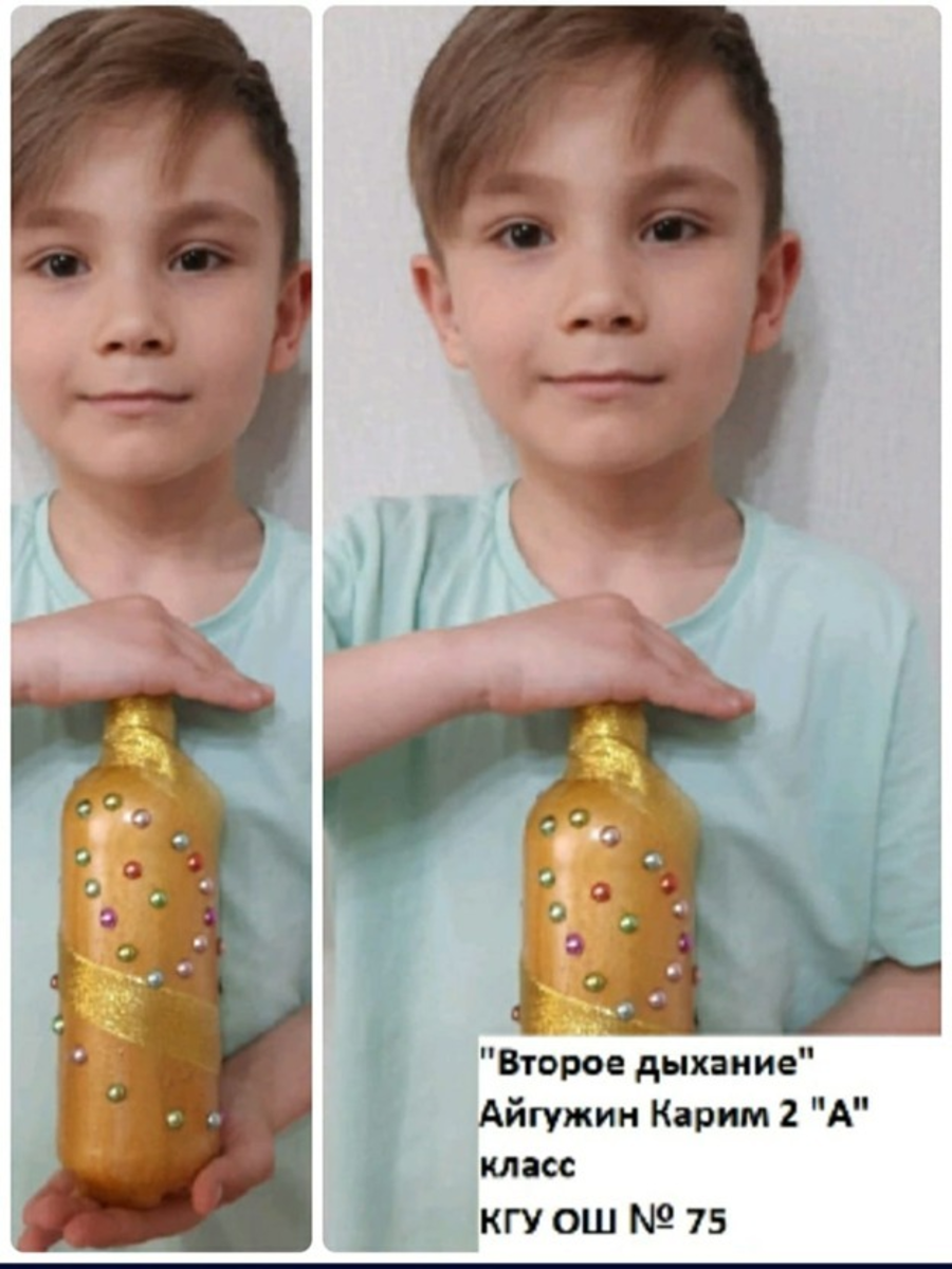 В рамках третьего дня (28 апреля) общереспубликанской Недели экологического образования в КГУ ОШ №75 им. Ш.Кудайбердыулы прошел Конкурс поделок из бросового материала «Второе дыхание» среди учащихся 1-4 классов.