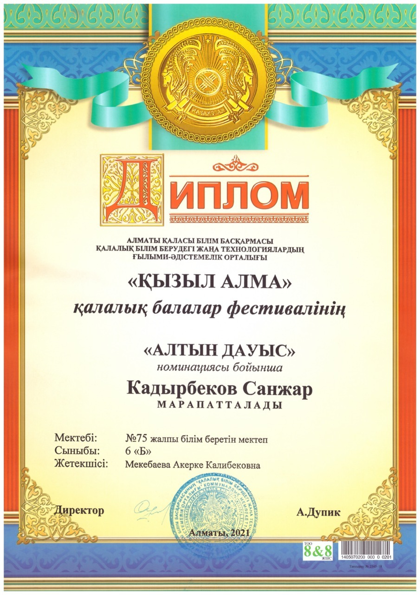 КГУ «Общеобразовательная школа № 75 имени Шакарима Кудайбердыулы» Управления образования г.Алматы