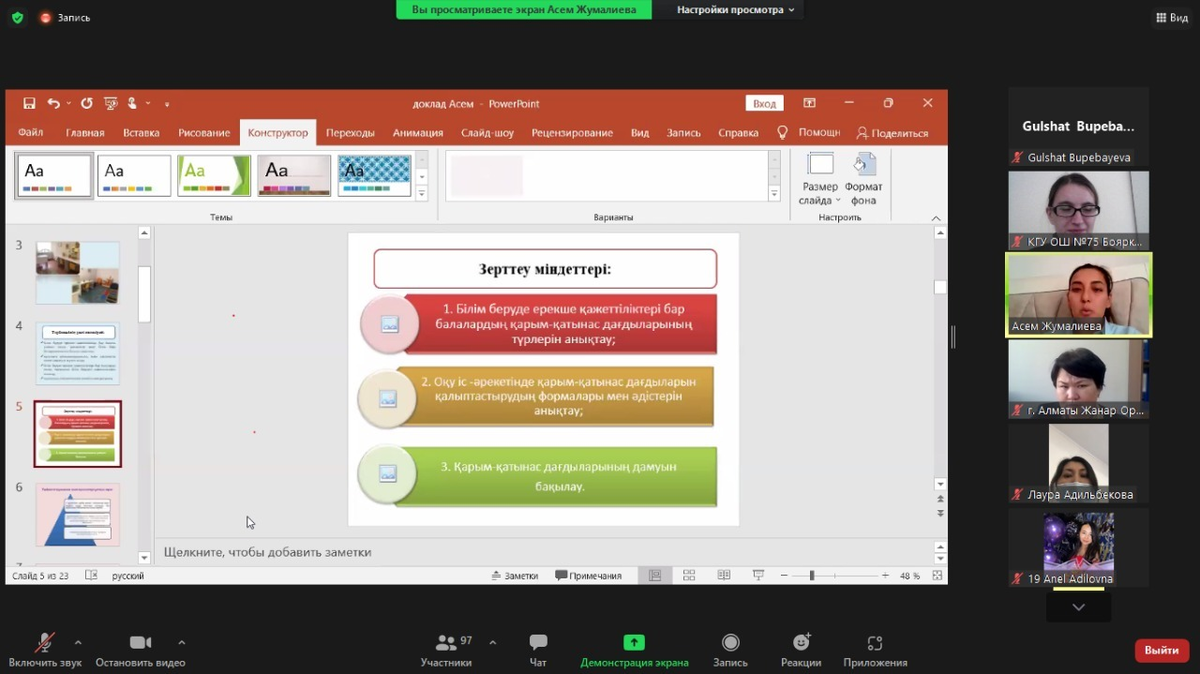 Сегодня состоялся Городской семинар по инклюзивному образованию. В секции для педагогов-ассистентов выступила Жұмалиева Әсем Бейбітқызы с докладом на тему: "Білім беруде ерекше қажеттіліктері бар балалардың коммуникативтік дағдыларын қалыптастыруда педагог-тәрбиешінің рөлі".