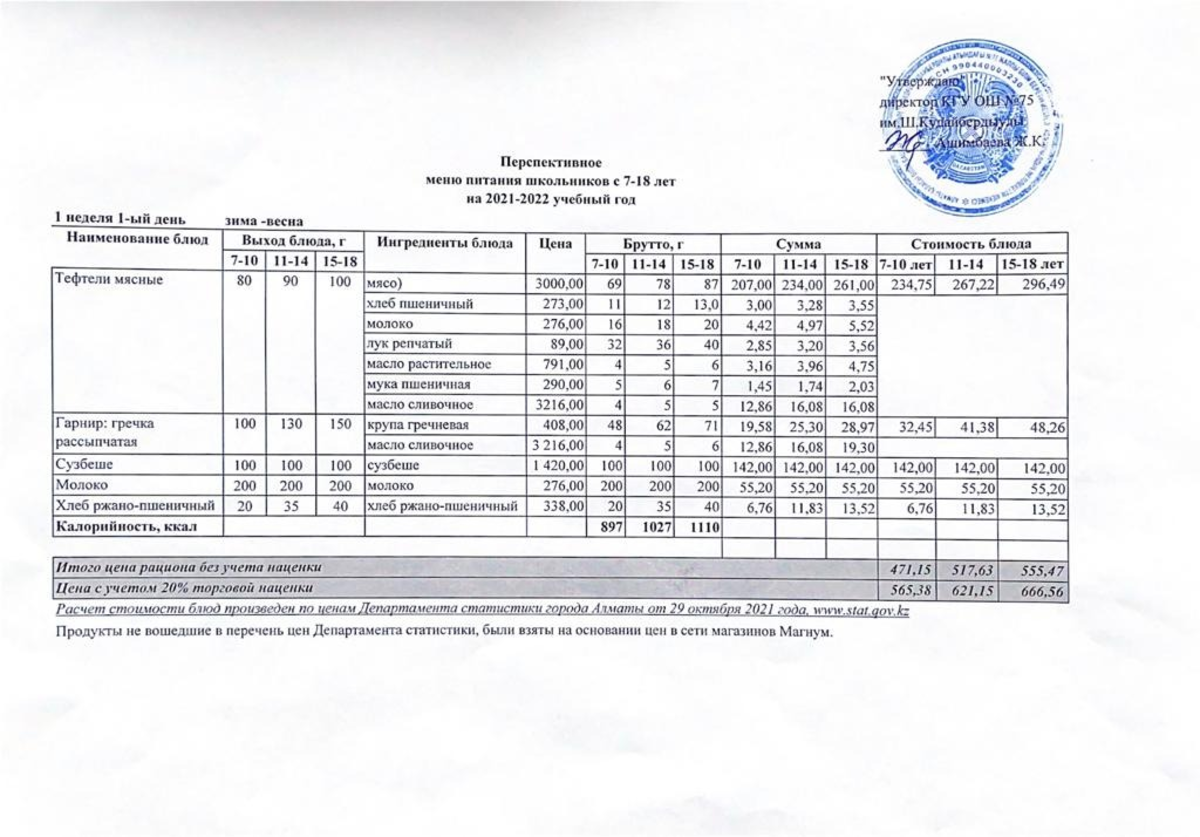 04 сентябрь 2021 0 1 2 3 4 5 Перспективное четырехнедельное меню блюд для организации бесплатного питания отдельных категорий обучающихся в организациях среднего образования за счет бюджетных средств (лето-осень) 1 неделя_2021-2022 учебный год