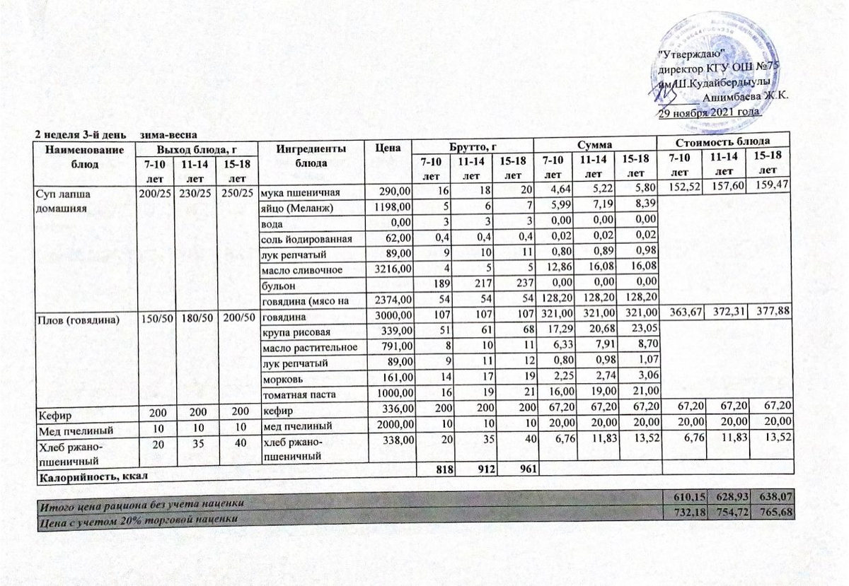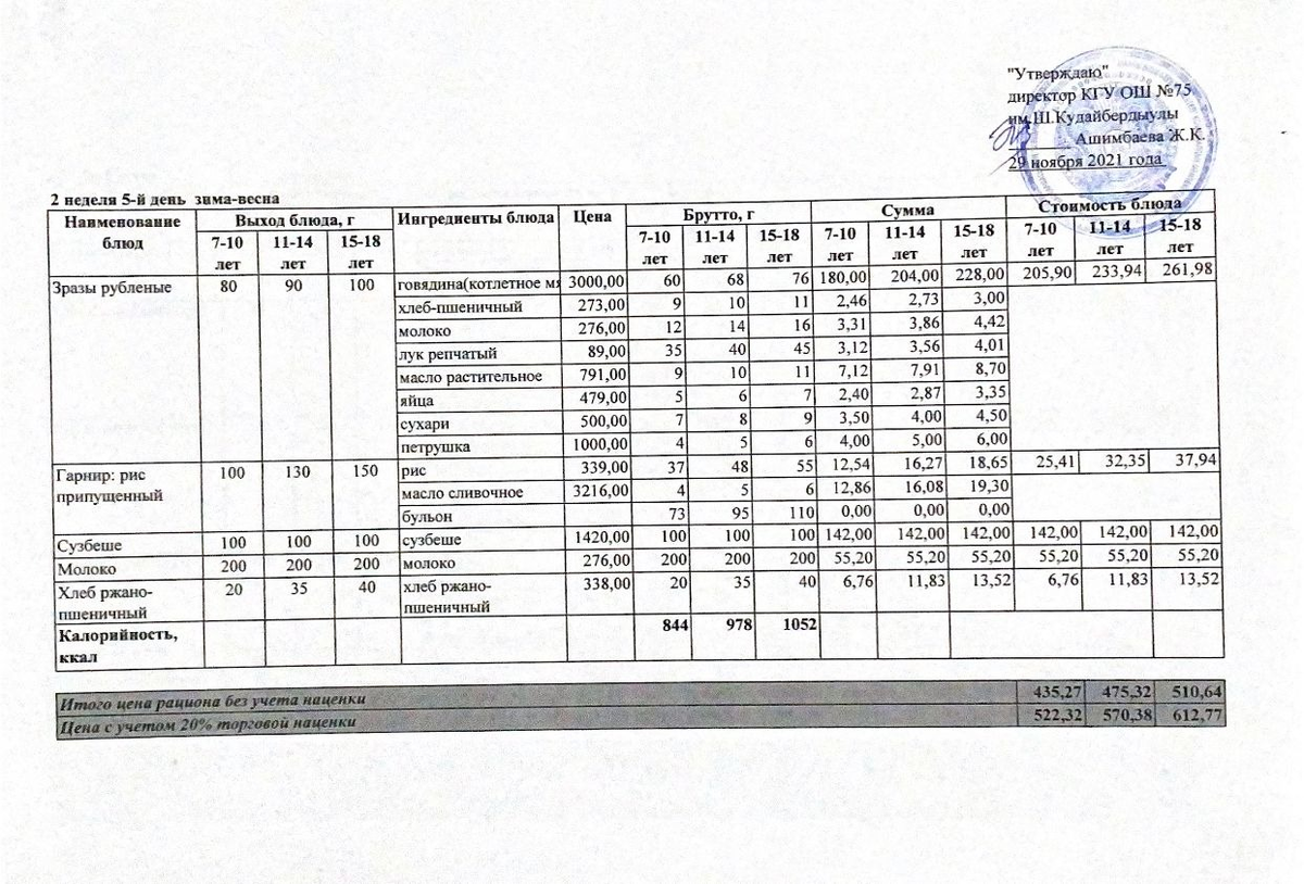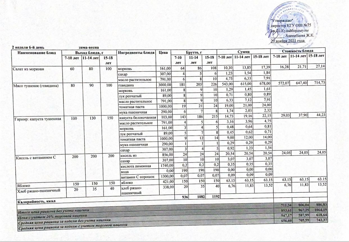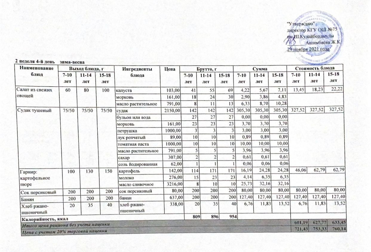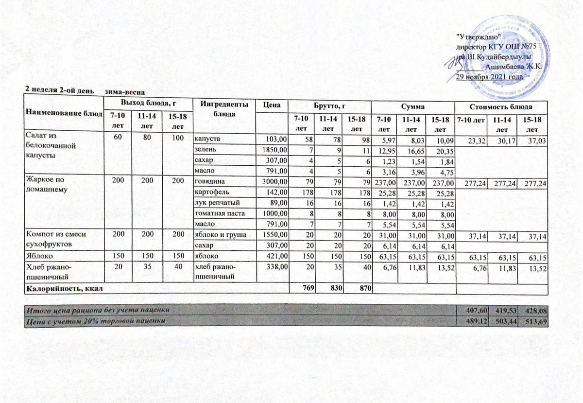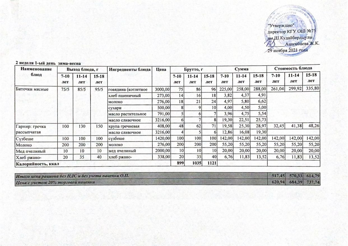Перспективное меню блюд для организации бесплатного питания отдельных категорий обучающихся в организациях среднего образования за счет бюджетных средств (зима-весна) 2 неделя_2021-2022 учебный год