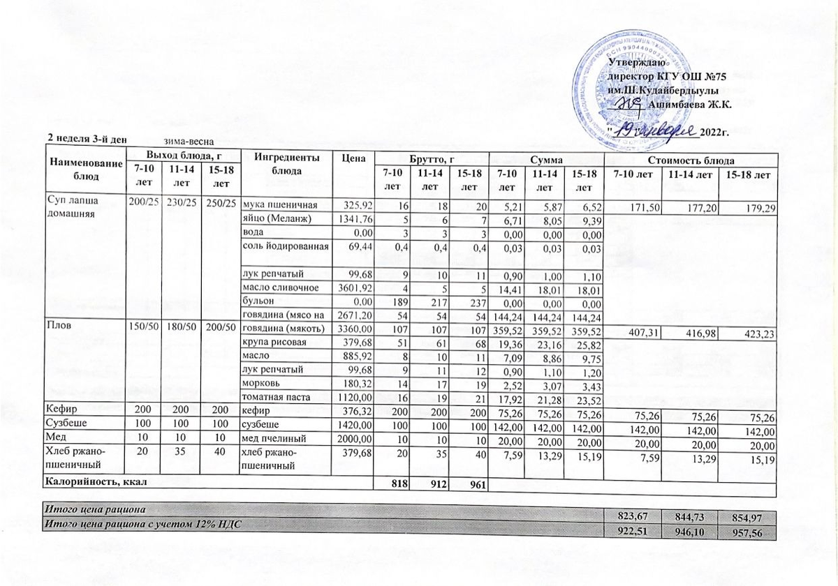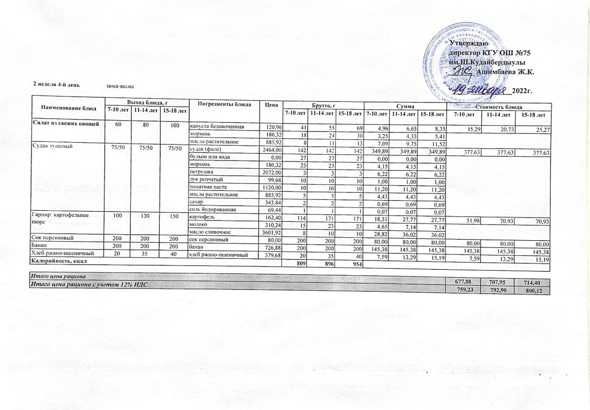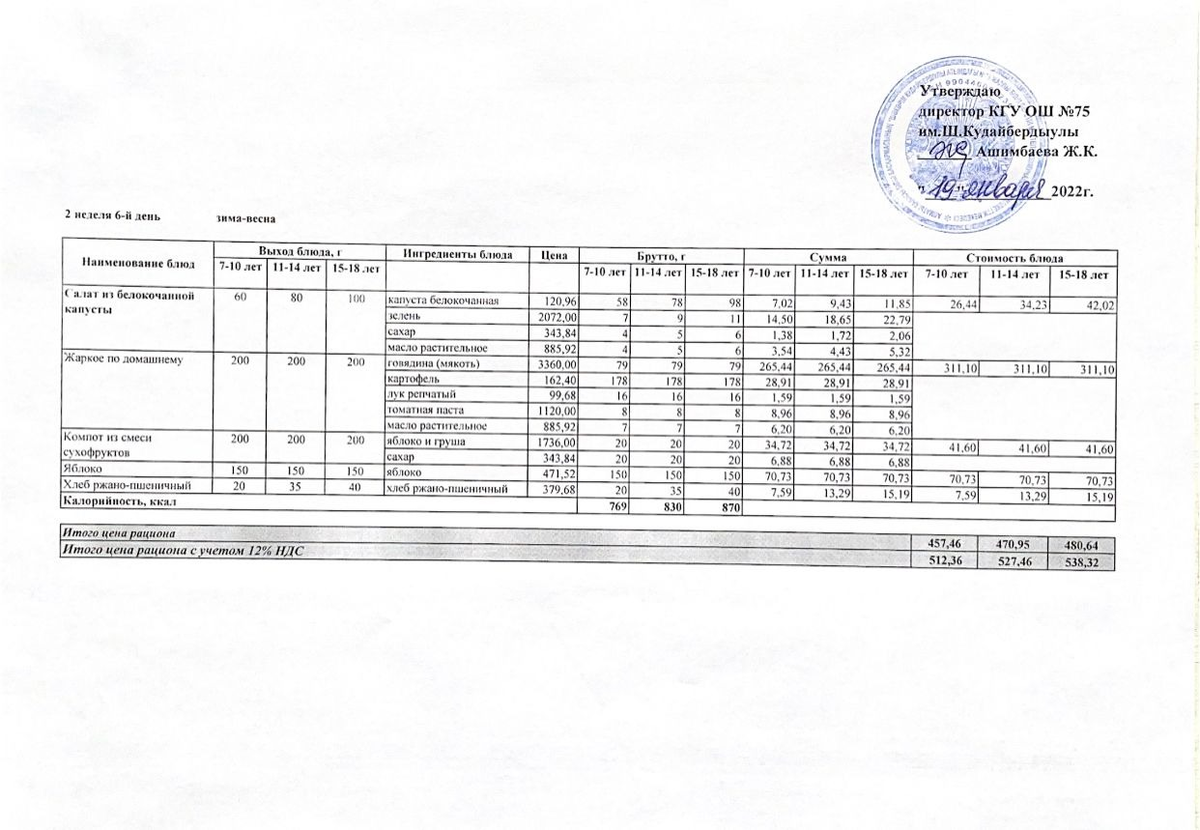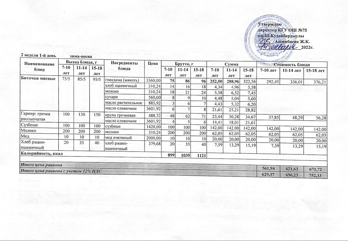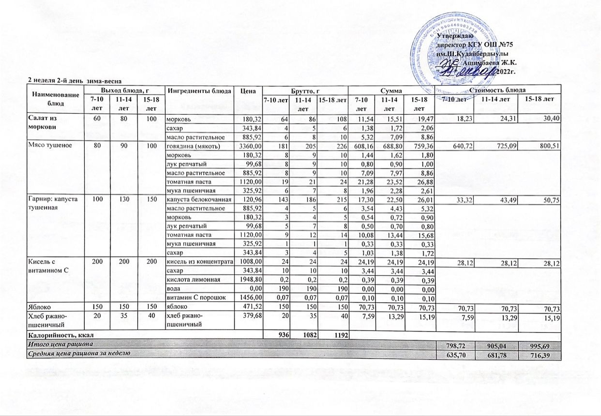 Перспективное меню блюд для организации бесплатного питания отдельных категорий обучающихся в организациях среднего образования за счет бюджетных средств (зима-весна) 2 неделя_2021-2022 учебный год