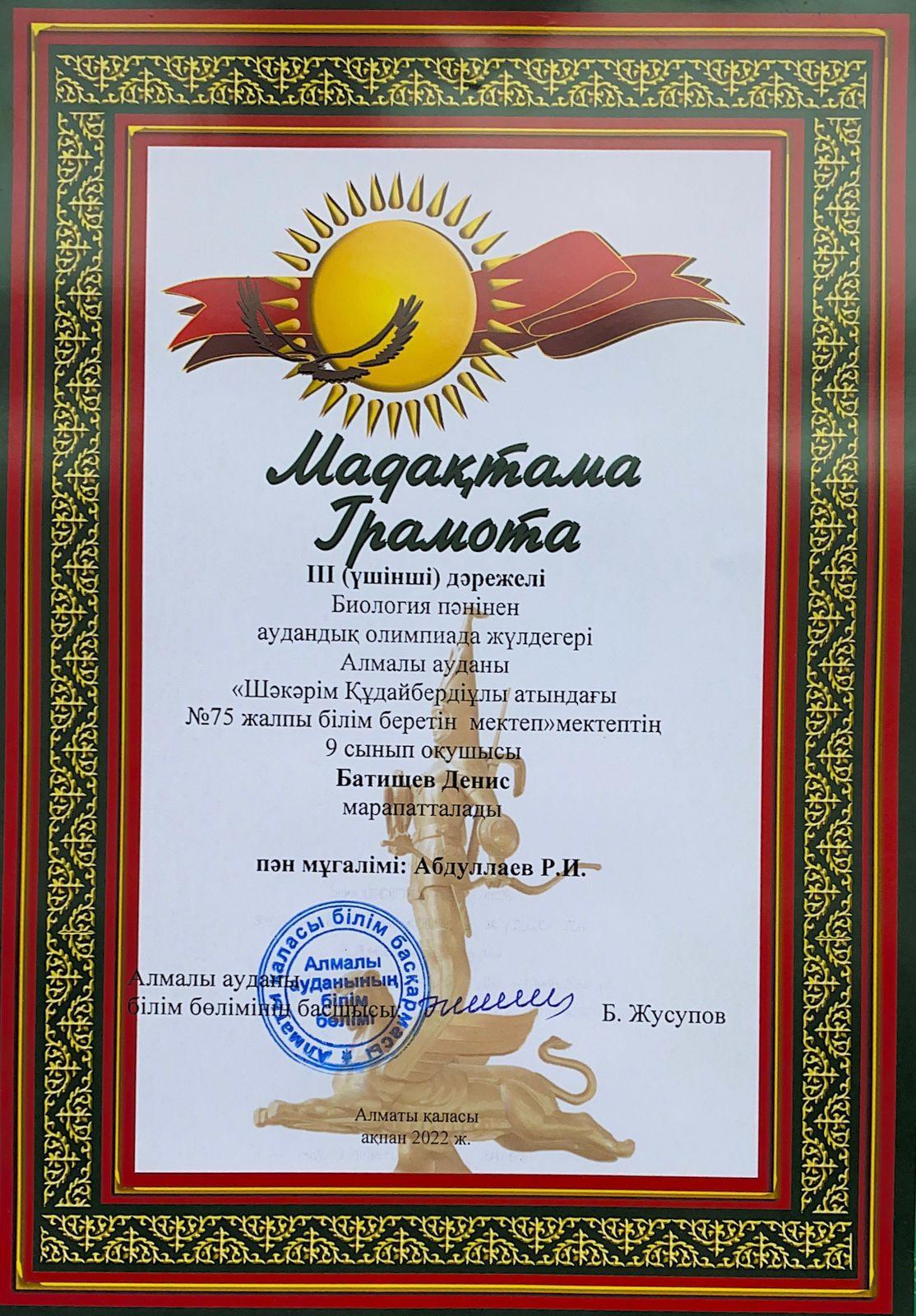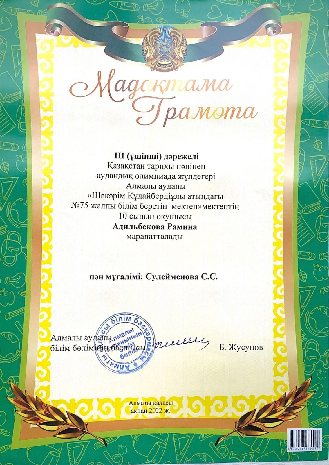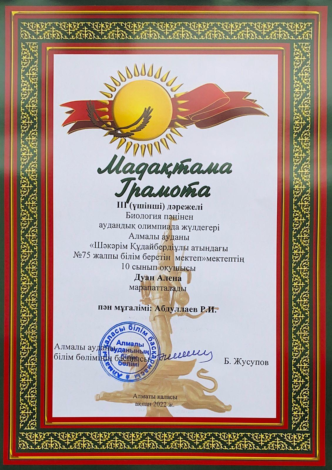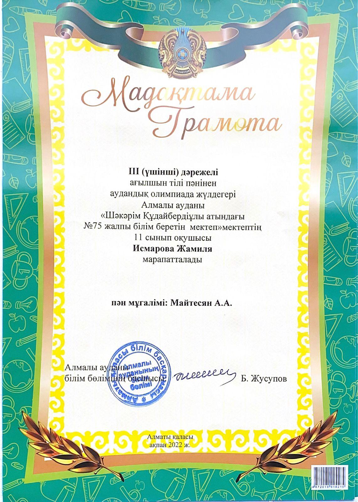 10 май 2022 0 1 2 3 4 5 Итоги районного этапа Республиканской олимпиады Всего на районном этапе учащиеся нашей школы заняли 9 призовых мест по 7 учебным предметам