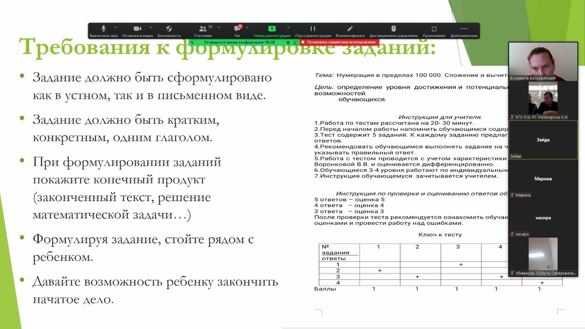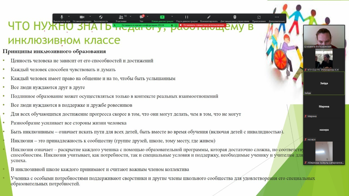 14.10.2022 ж.инклюзивті білім беру әдіскері Е. М. Волковинская Алмалы ауданының инклюзивті практиканы іске асыратын мұғалімдері мен дефектологтары үшін "инклюзивті сыныпта сабақ жоспарын әзірлеу"тақырыбында zoom семинар өткізді.