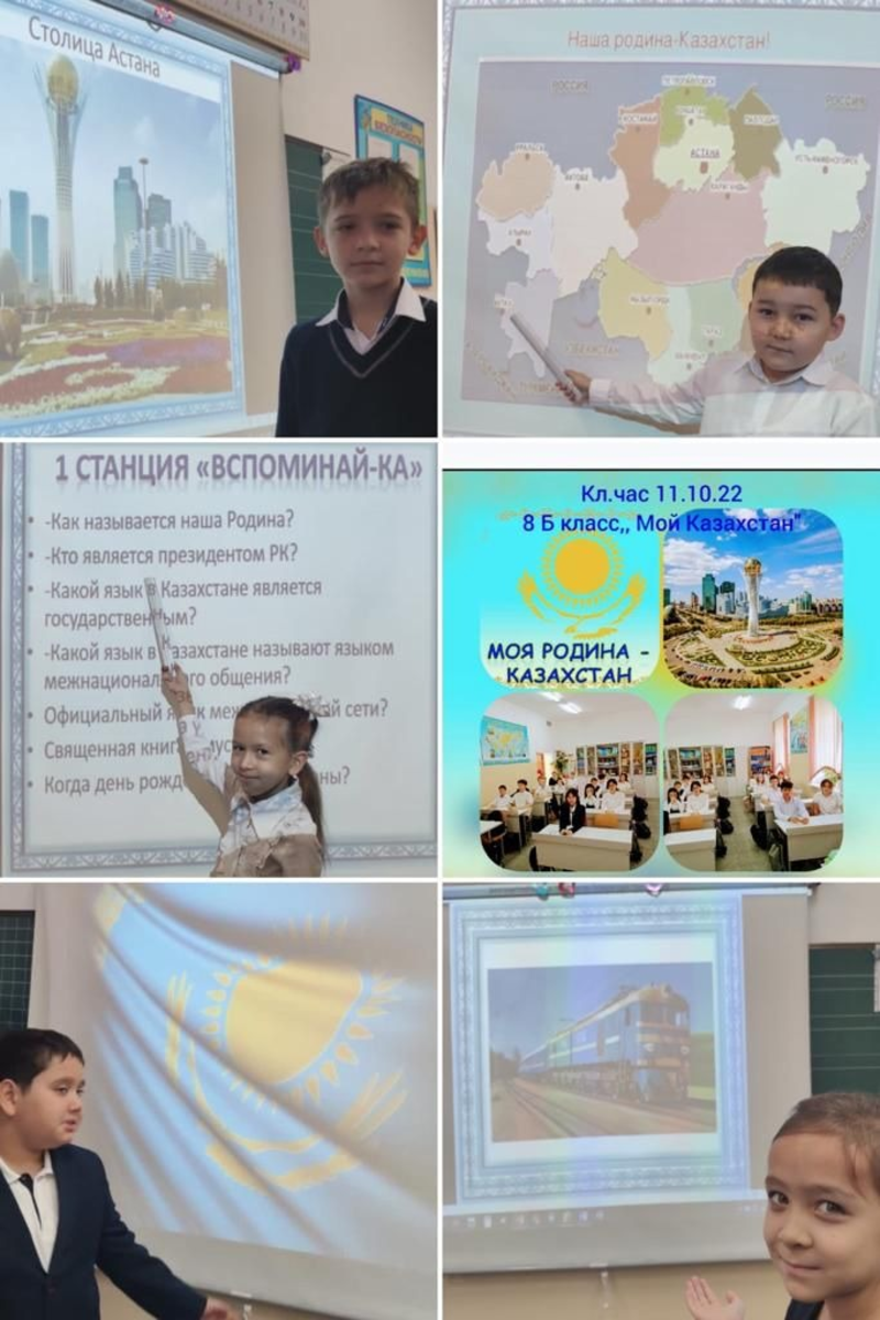 "Отан неден басталады?", "Мен өзімнің туған жерімді білемін бе?", "Менің елімнің дамуына қосқан үлесім" бұл 11 қарашада біздің мектептің оқушылары Республика күніне арналған сынып сағаттарында қызықты, креативті, мақтанышпен жауап берген және айтқан сұрақтардың толық тізімі емес.