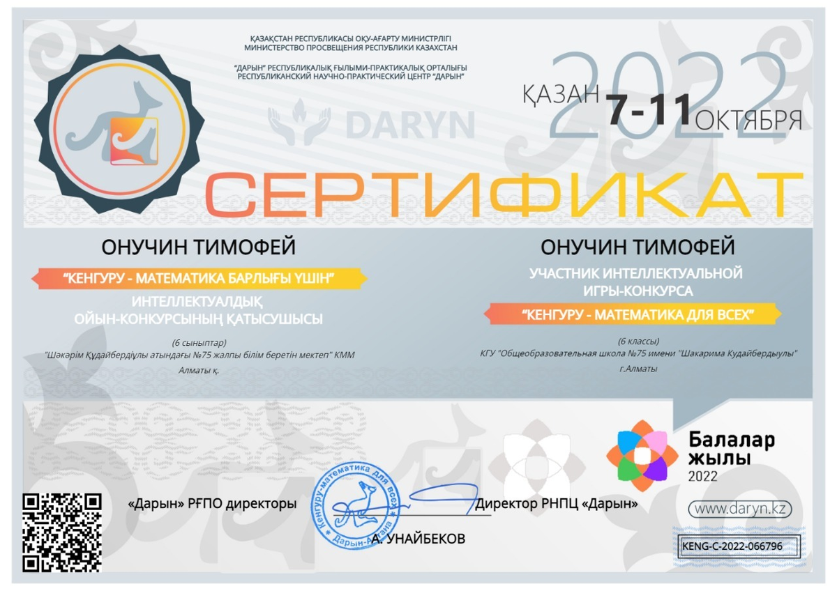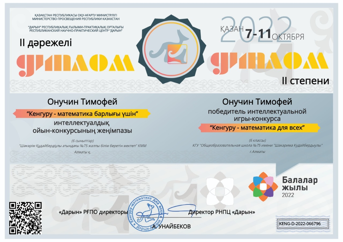 18 октябрь 2022 0 1 2 3 4 5 Ерекше білім беру қажеттіліктері бар оқушылар "Кенгуру-барлығына арналған математика" республикалық олимпиадасында екінші орынға ие болды. / Учащиеся с ООП заняли вторые места в Республиканской олимпиаде "Кенгуру - математика для всех"