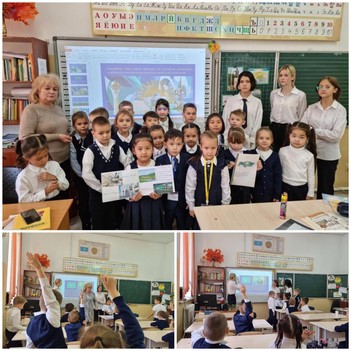 "Қазақстан Республикасы КҮНІ" тақырыбында 1 "А" және 9 "А"сынып оқушыларымен бірлескен сынып сағаты өткізілді. Мұғалім Шәріпова Лилия Исхаковна.