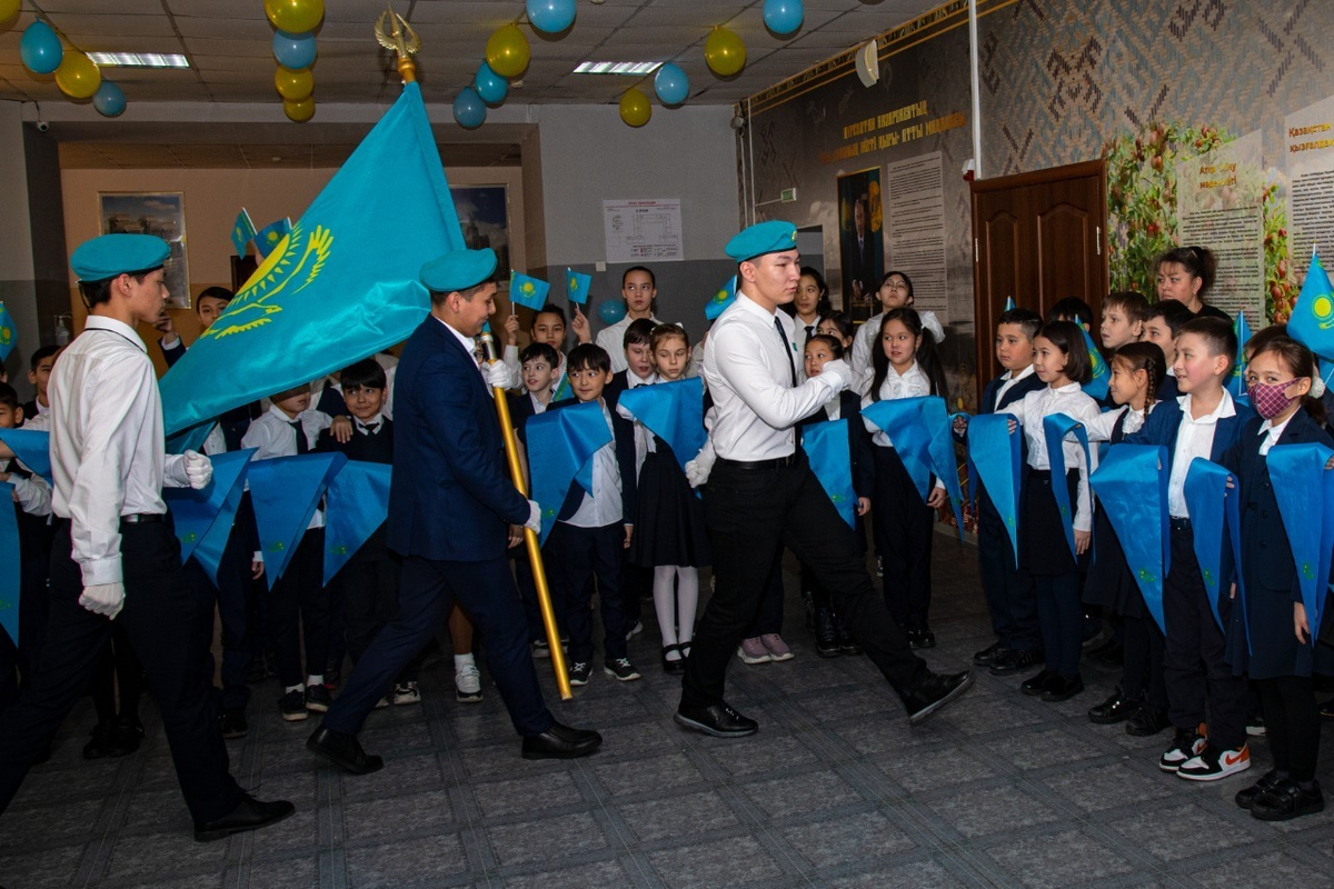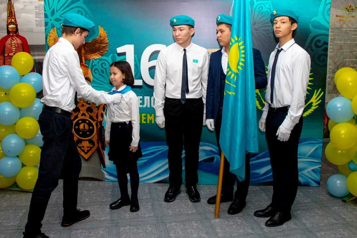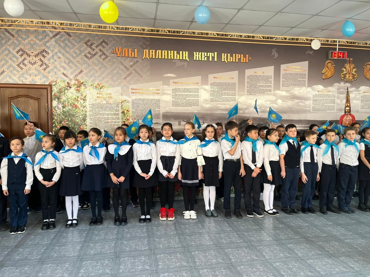 Қазақстан Республикасының Тәуелсіздігі күні мерекесі қарсаңында «Жас Қыран» біріккен балалар ұйымына қабылдау / Принятие учащихся в ряды "Жас Кыран" в честь праздника Дня Независимости Республики Казахстан