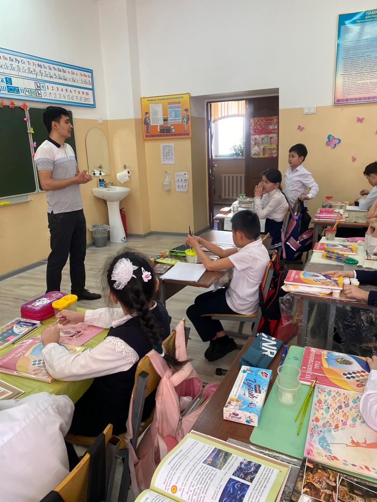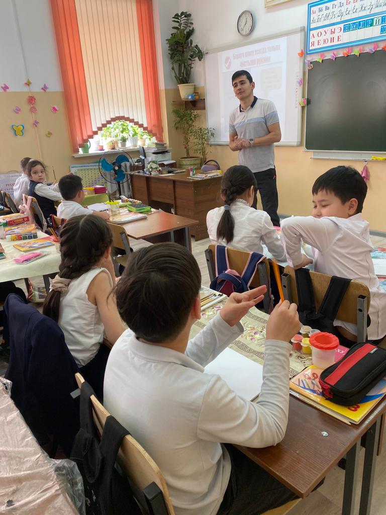 Кітапханашы Ф. Абдумаликов балалармен әңгімелесу үшін "Кітаппен жұмыс істеу ережелері" атты презентацияны қолданды, содан кейін оқушылар кітаптармен не істеу керек және не істеуге болмайды деген сұрақтарға жауап берді, болашақта басқа да буындар кітапты құрметпен, сыйластықпен қолдану керектігін білді.