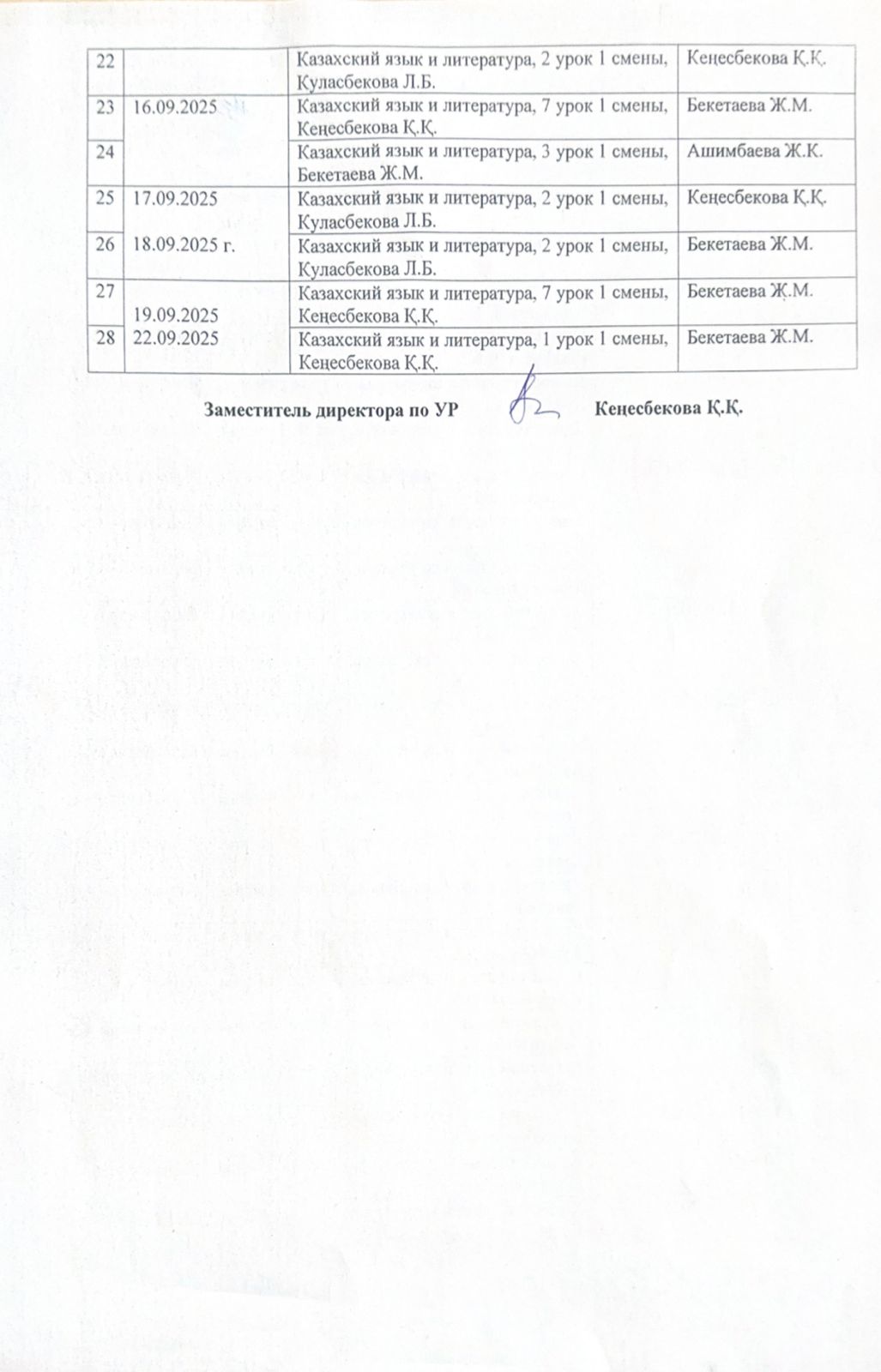 График посещения уроков администрацией школы. / Мектеп әкімшілігінің келу кестесі.