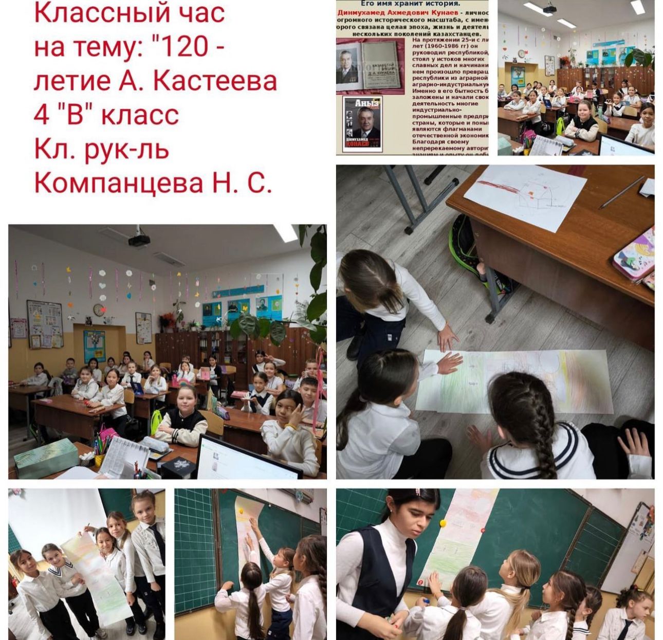 09 январь 2024 0 1 2 3 4 5 Проведен классный час на тему: "120-летие А. Кастеева". 9 января текущего года в 4 "В" классе был проведен классный час на тему: "120-летиеА. Кастеева". Классный руководитель: Н.С.Компанцева.