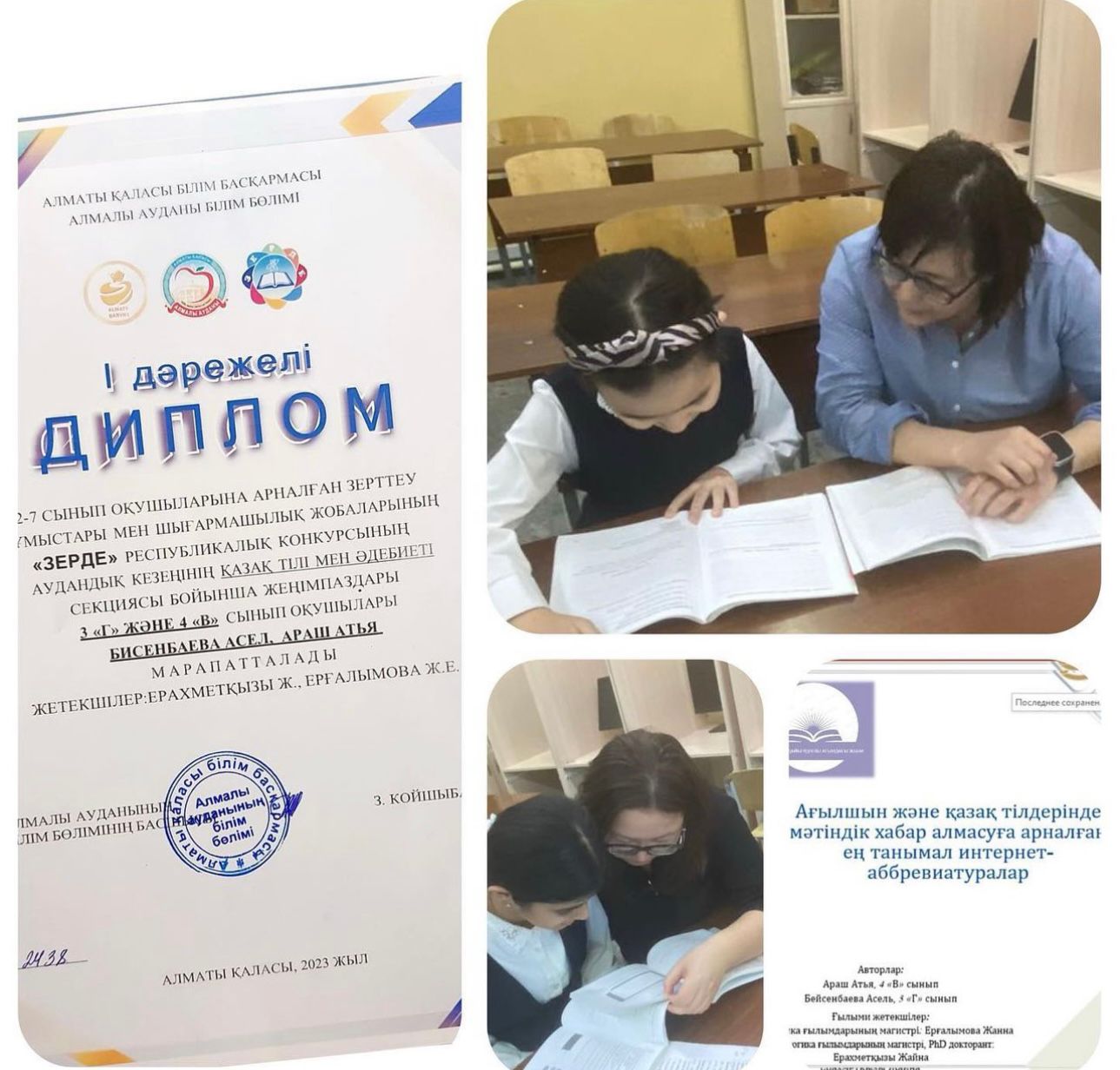 "Зерде" республикалык конкурсынын аудандык, кезенінін казак, тілі мен адебиеті секциясы бойынша женімпаздары