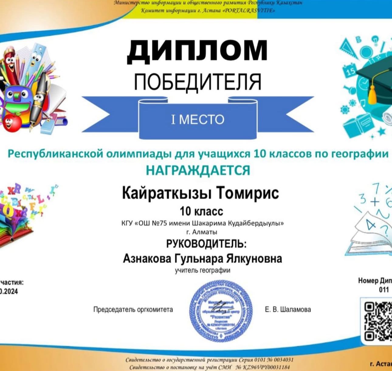 Республиканская олимпиада «Мега Мозг» стала важным событием для наших учеников, предоставив им уникальную возможность проверить свои знания и продемонстрировать умения в области географии и экологии. Под руководством учителя географии и естествознания Азнаковой Гульнары Ялкуновны наши ученики достойно проявили себя, показав высокий уровень подготовки, критического мышления и экологической осознанности.