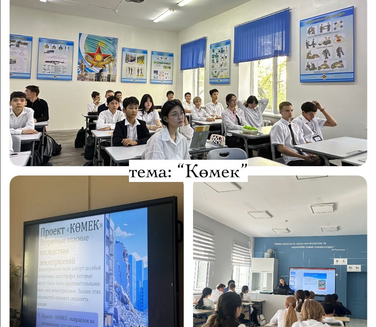 29 сентября 2025 года в нашей школе для учащихся 9-11 классов в рамках программы «Кемек» был проведён классный час по первому модулю - «Землетрясение».