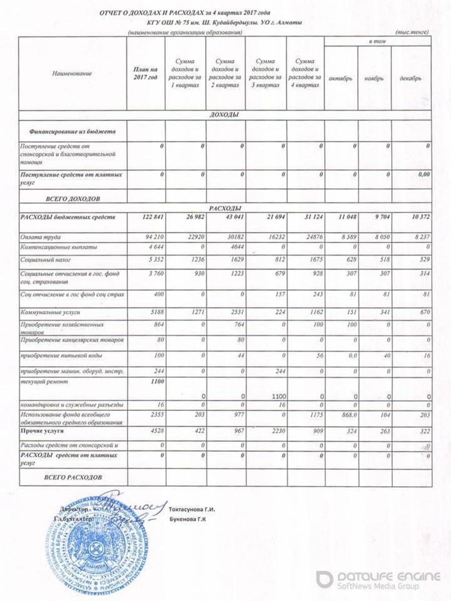 » Отчет о доходах и расходах за 4 квартал 2017года