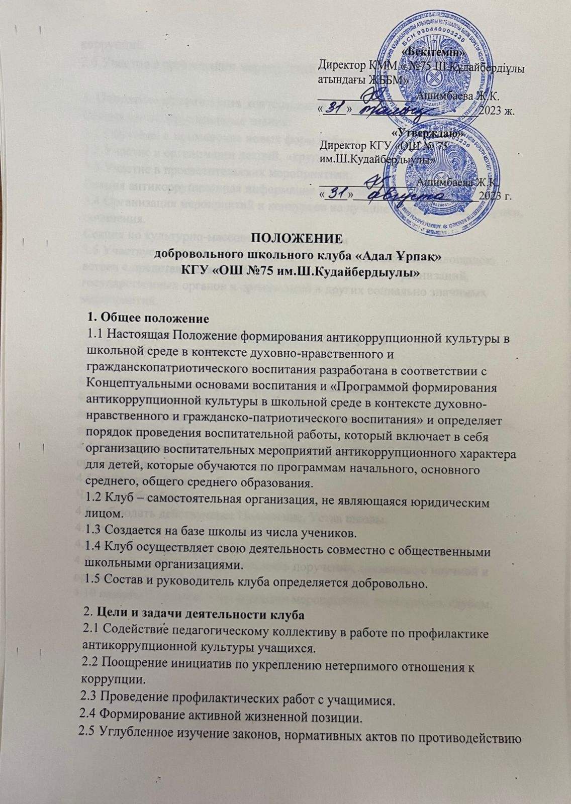 31 август 2023 0 1 2 3 4 5 "Адал ұрпақ" ерікті мектеп клубының ережесі / Положение добровольного школьного клуба "Адал Ұрпақ".