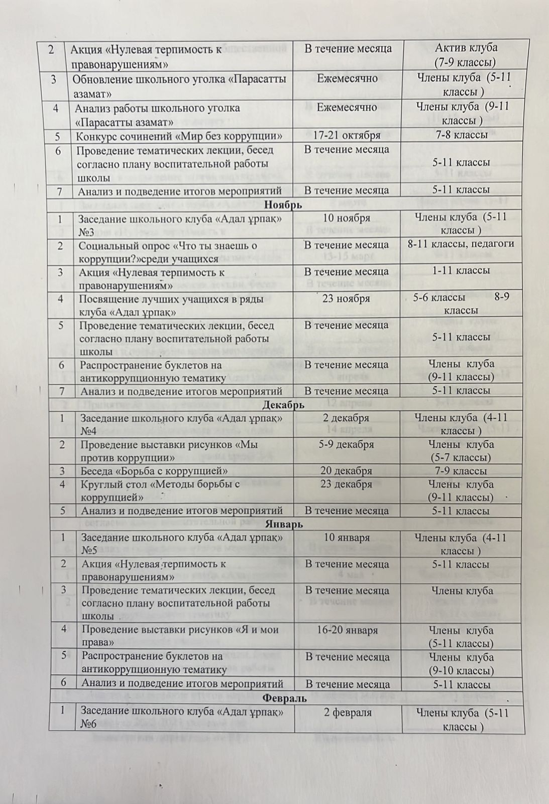 31 август 2023 0 1 2 3 4 5 "Адал ұрпақ" мектеп клубының 2023-2024 оқу жылына арналған жұмыс. План работы школьного клуба "Адал ұрпақ" .