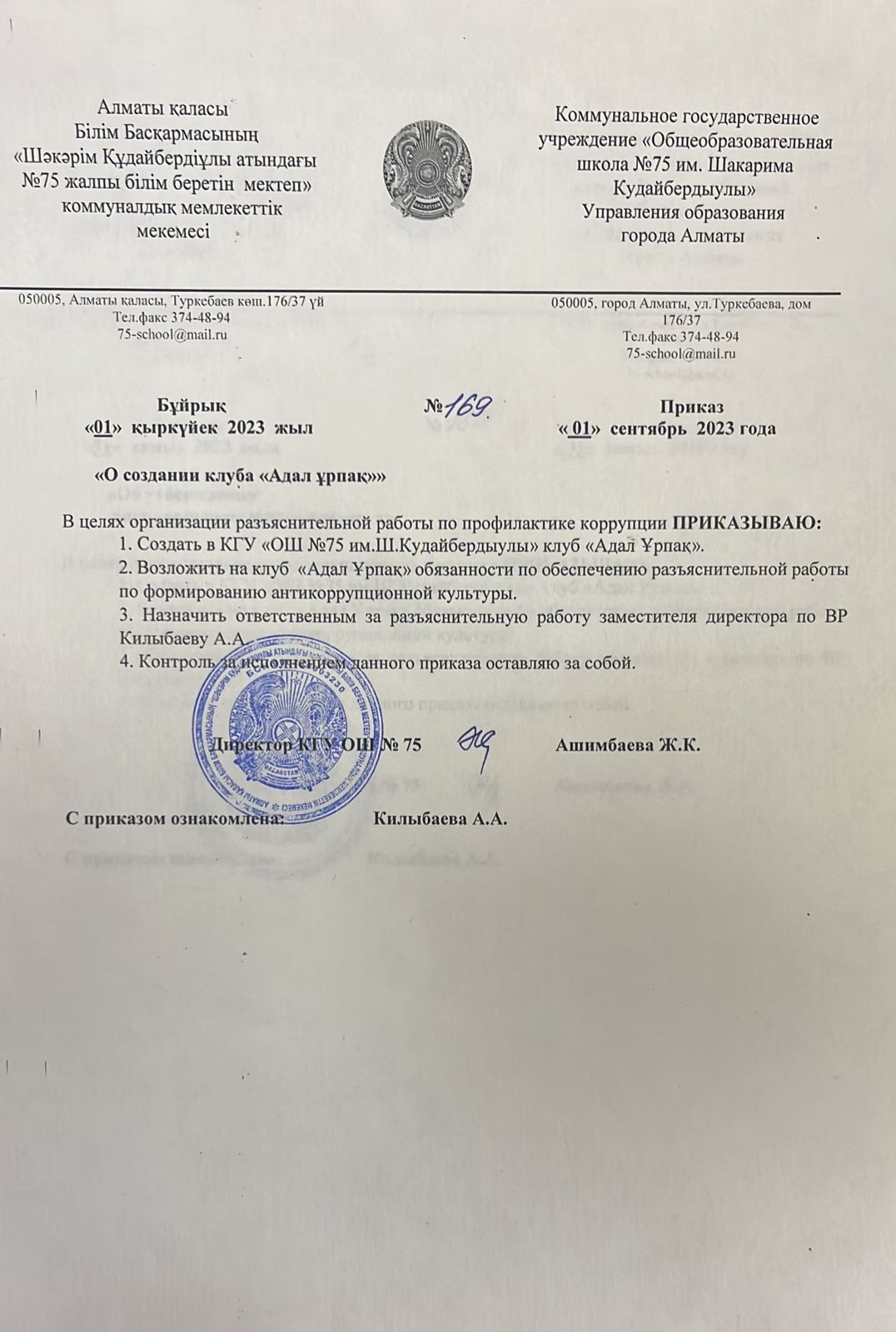 01 сентябрь 2023 0 1 2 3 4 5 "Адал ұрпақ" мектеп клубын құру туралы / О создании школьного клуба "Адал ұрпақ"