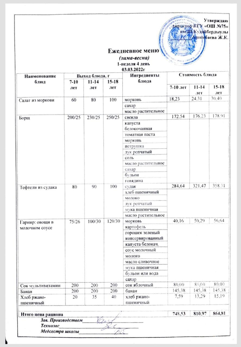 Ежедневное меню и фото готового блюда согласно меню на 3 марта 2022 года