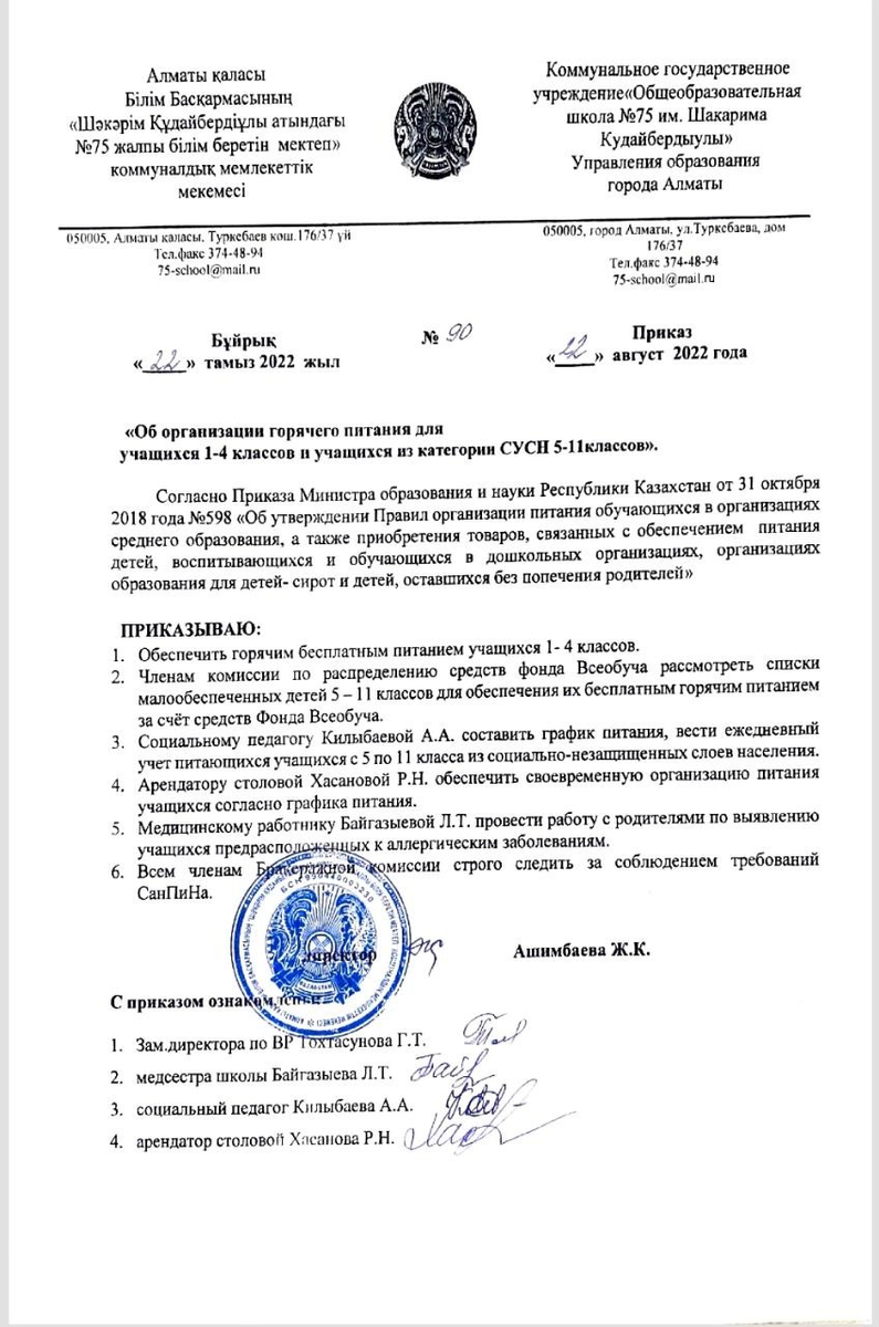 01 сентябрь 2022 0 1 2 3 4 5 1-4 сынып оқушыларына ыстық тамақты ұйымдастыру туралы / Об организации горячего питания учащихся 1-4 классов