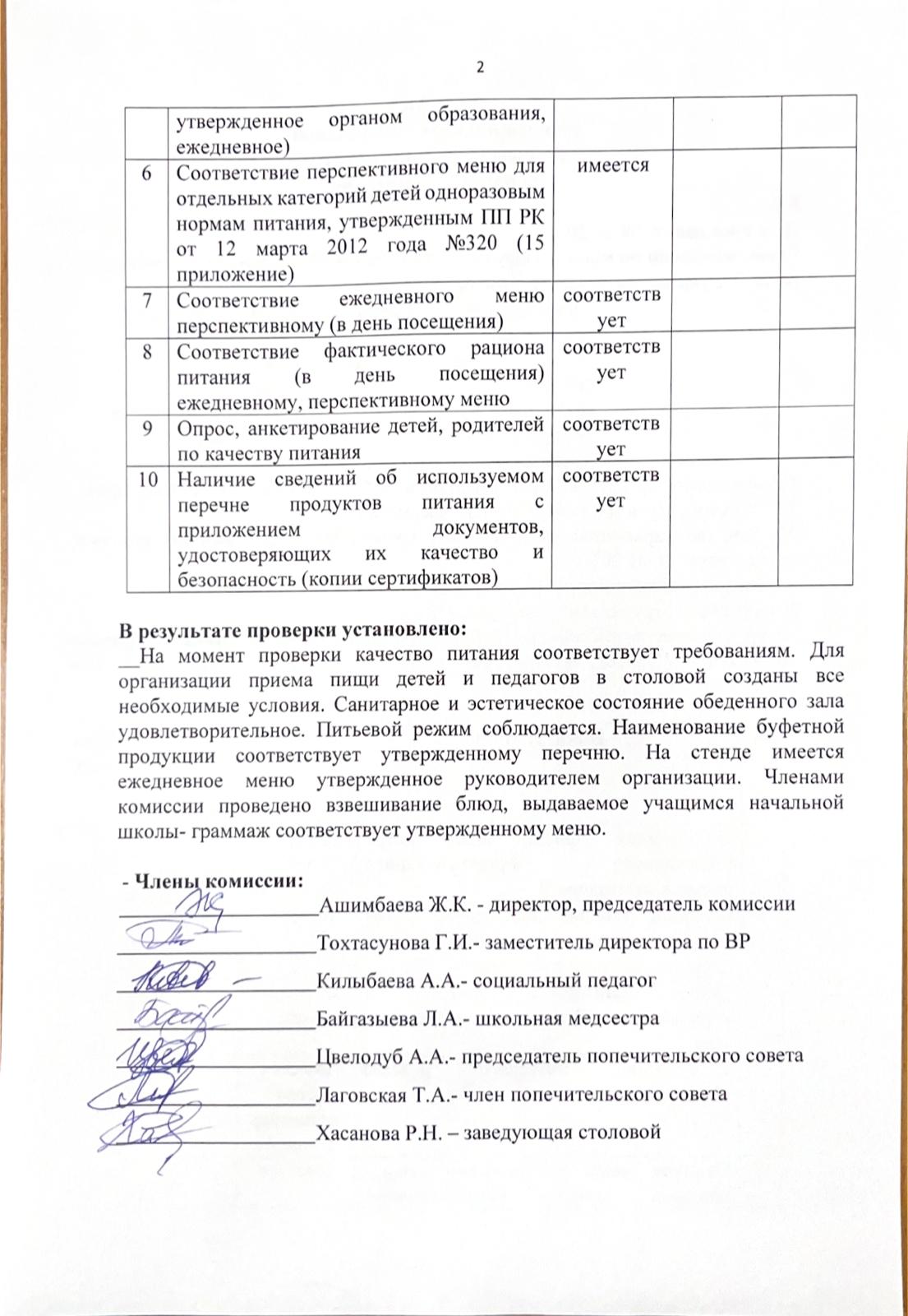 06 декабрь 2022 0 1 2 3 4 5 Мектеп асханасының дайындығын бракераждық комиссияның тексеру №6 актісі / Акт №6 проверки бракеражной комиссии готовности школьной столовой