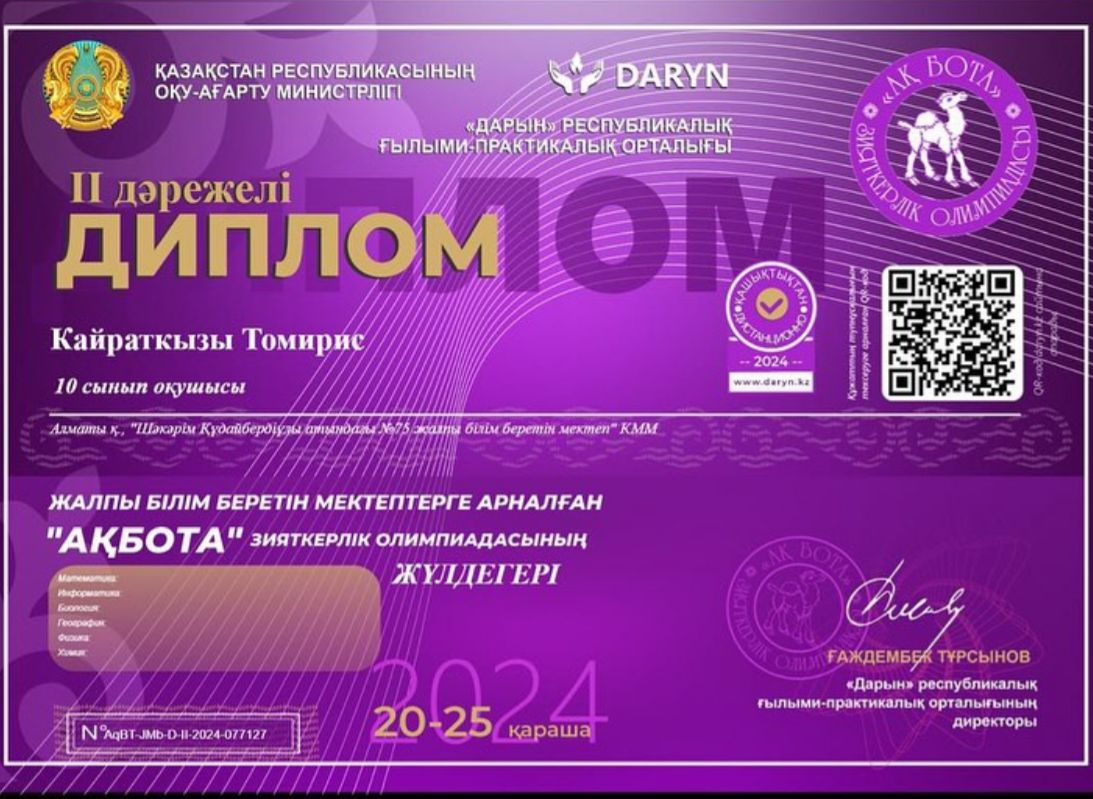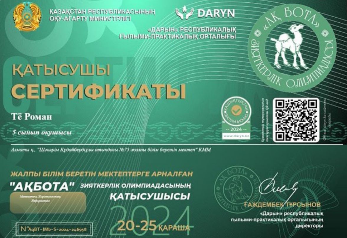 Мектебіміздің оқушыларының беделді республикалық «Ақбота» олимпиадасына қатысқанын мақтанышпен хабарлаймыз!